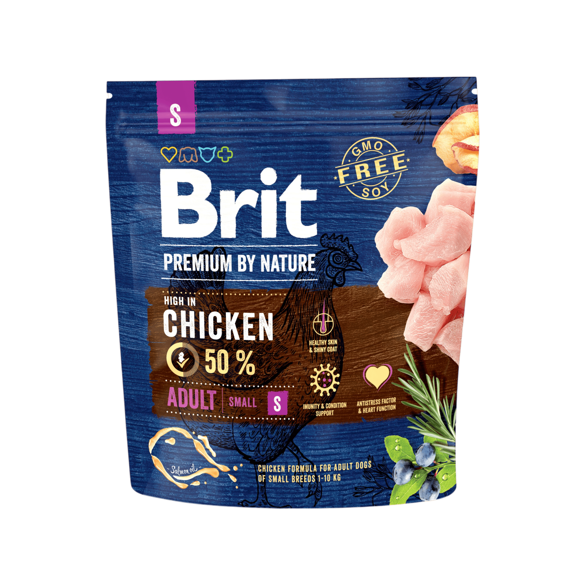 Kompletní krmivo pro dospělé psy. Kuřecí receptura pro dospělé psy malých plemen do 10 kg.