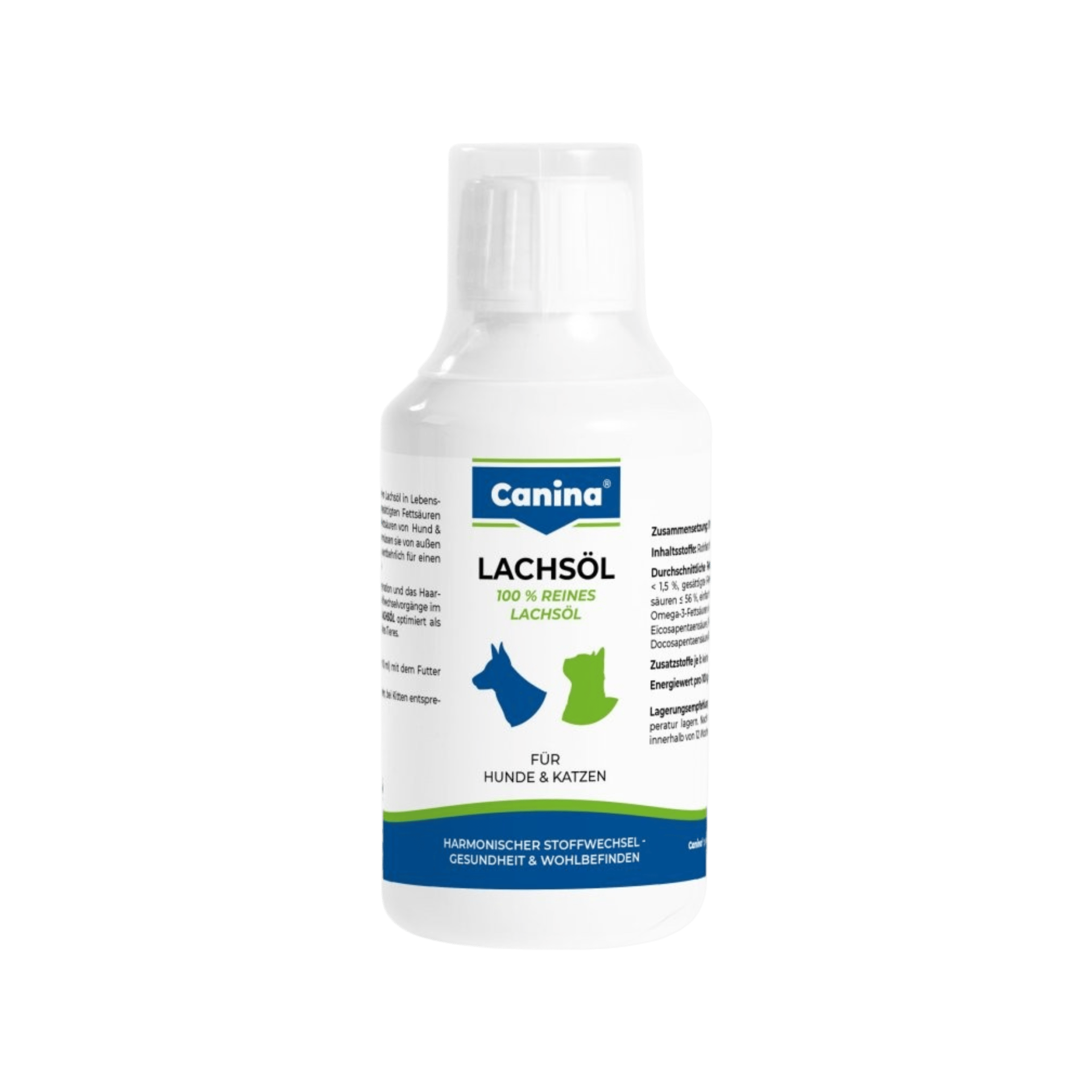 Lososový olej fy Canina je nezbytný pro podporu regenerace kůže a růst srsti a výměnu látkovou v těle. Je použitelný jak při krmení granulovanou, tak čerstvou (doma připravenou) potravou, vždy krmnou dávku optimalizuje.