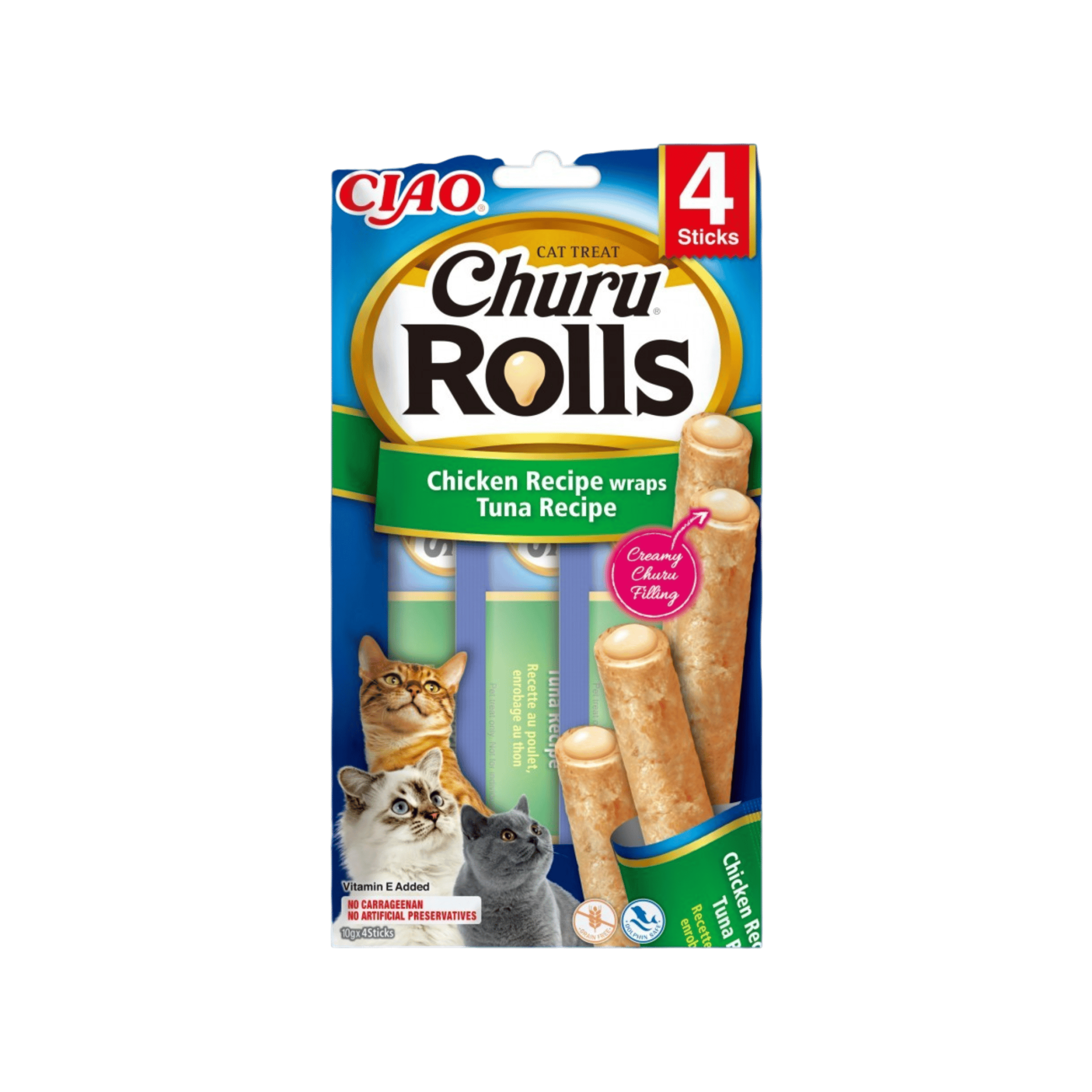 Churu Cat Rolls Chicken wraps Tuna&Scallop cream 4x10g