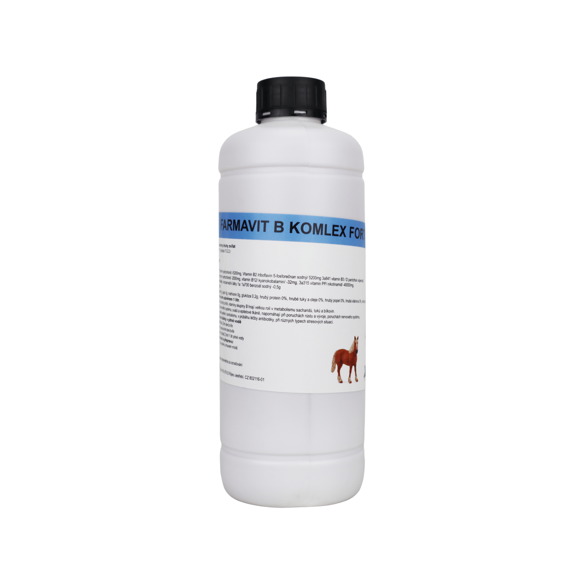 Farmavit B-complex FORTE se přidává do pitné vody u všech druhů zvířat v množství: