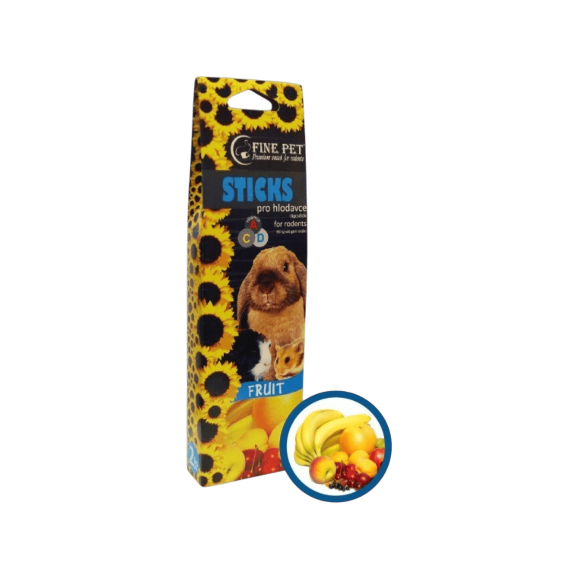 Ovocné tyčky pro hlodavce. Ovocná pochoutka s bohatým obsahem proteinů, tuků, minerálních solí a vitamínů. Je také zdrojem vysokokalorických sloučenin potřebných ke stavbě organismu.