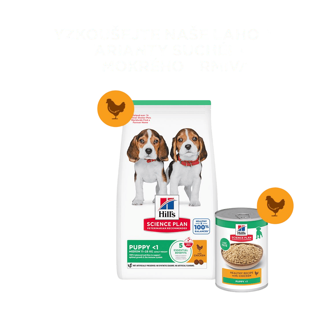Najít krmivo s těmi správnými živinami, které vašemu štěněti pomohou plně rozvinout svůj potenciál, nemusí být složité. Proto Hill's Science Plan krmivo pro štěňata středních plemen s kuřetem představuje lahodnou, 100% zdravou a vyváženou výživu pečlivě navrženou pro vývojové potřeby štěňat, aby měla ten nejlepší start do života a mohla zcela rozvinout svůj potenciál. Obsahuje vyváženou směs minerálních látek pro silné zuby a kosti. Obsahuje DHA z rybího oleje pro zdravý vývoj mozku a očí a vysoce kvalitní bílkoviny pro tvorbu svalové hmoty. Tato lahodná výživa obsahuje také ingredience pro zdravé trávení. Tato výživa je navržena s technologií ActivBiome+, patentovanou směsí prebiotik, která vyživuje mikrobiom a podporuje zdravé trávení a celkovou pohodu vašeho mazlíčka.