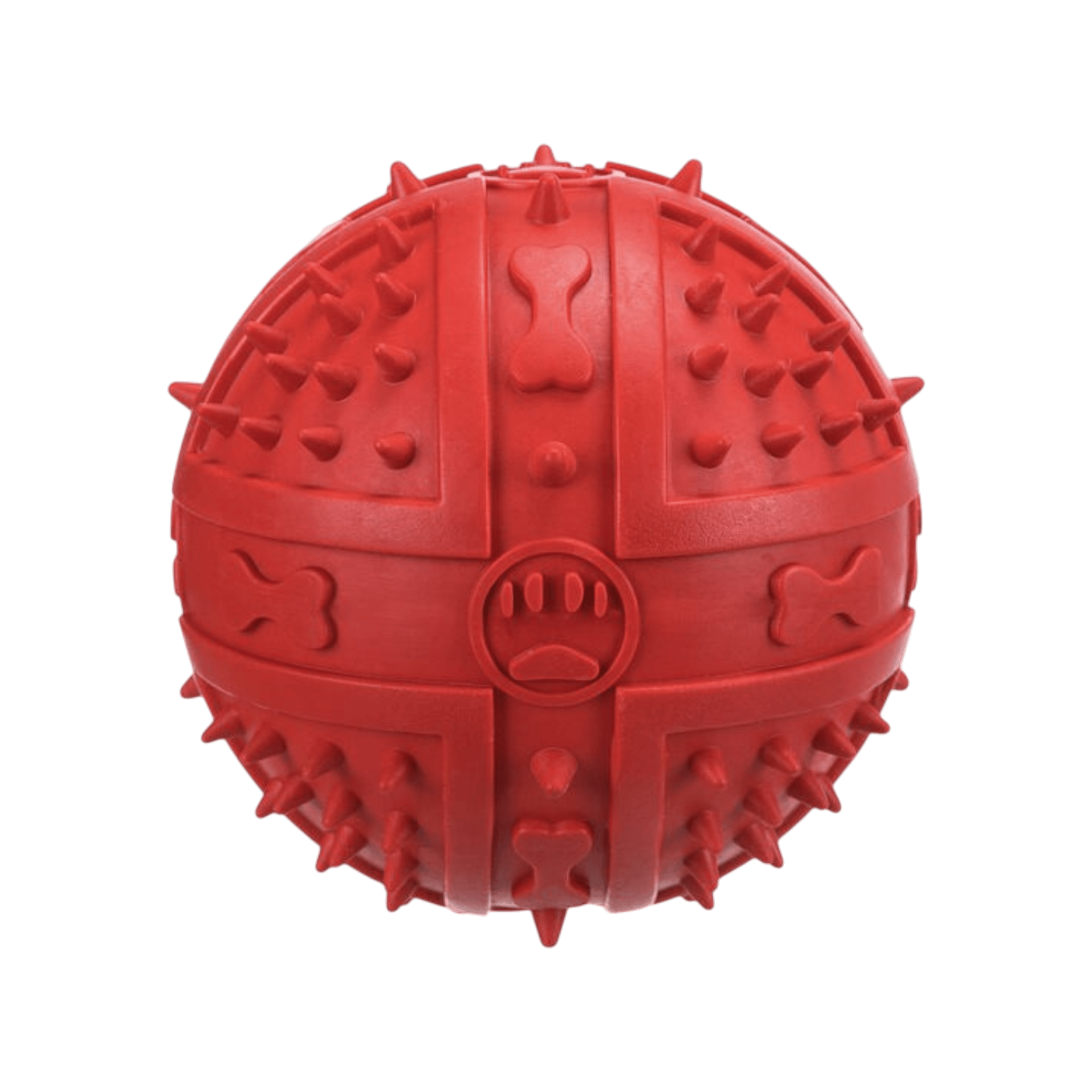 Míč pro psy z přírodní gumy. Hračka je vhodná pro psy všech plemen a věkových kategorií Zajistí vašemu pejskovi dlouhé hodiny zábavy. Gumový míč s měkkými bodlinami na povrchu a pískacím mechanismem uvnitř je použitelný jak na suchu tak i ve vodě.