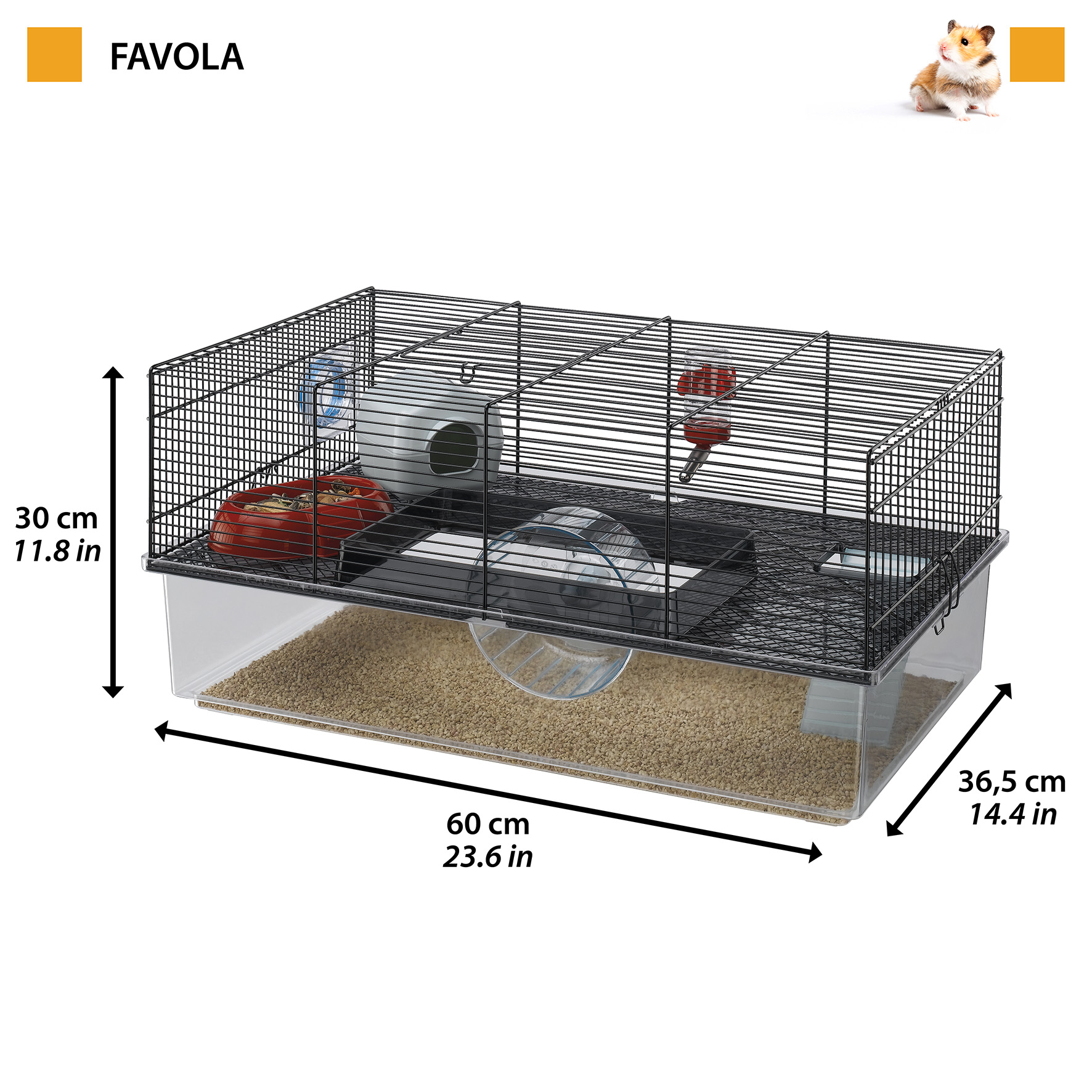 Ferplast vytvořil Favolu, klec pro křečky sestávající z velké průhledné plastové základny z průhledného plastu, která je navržena tak, aby obsahovala piliny, a s horní částí z drátěného pletiva. Stanoviště se vyznačuje konstrukcí na dvou úrovních, spojených plastovým žebříkem a velkým středovým otvorem, do kterého můžete připojit kolo.