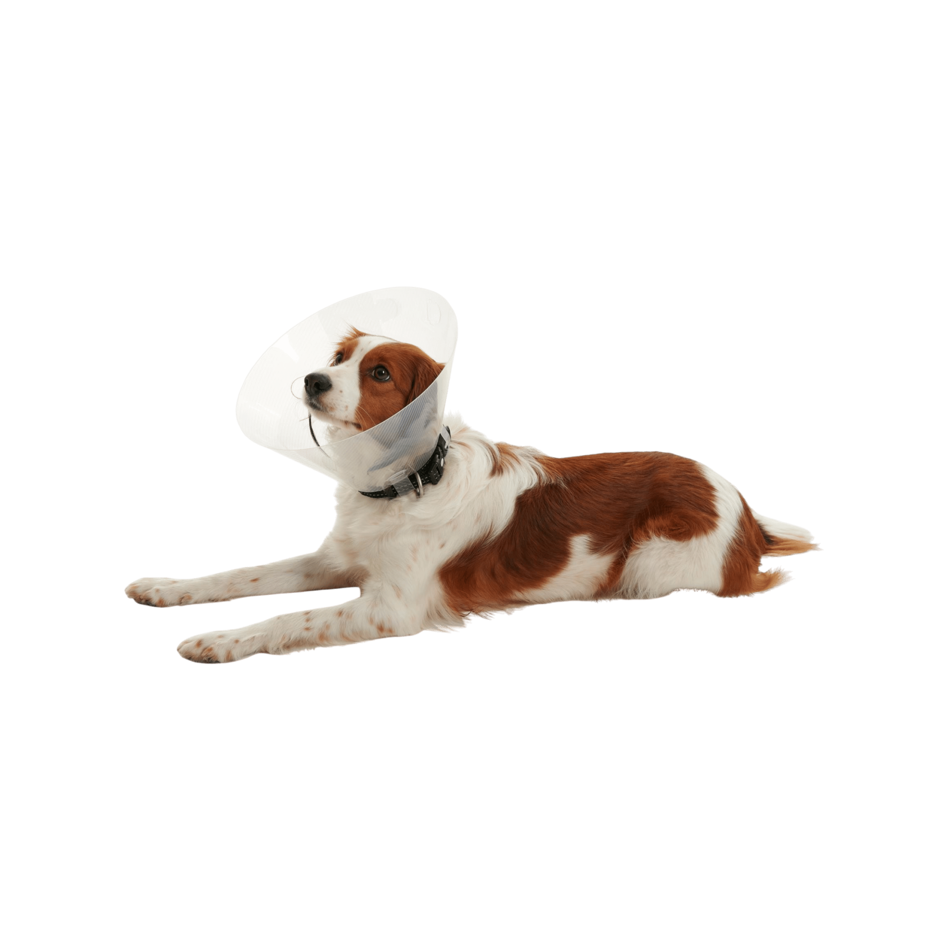 Límce s populárním, rychlým a jednoduchým „klik“ uzavíracím systémem. Připnutí k obojku je stejně snadné jako zapínání košile. Plně transparentní materiál nesnižuje zorné pole pacienta.
