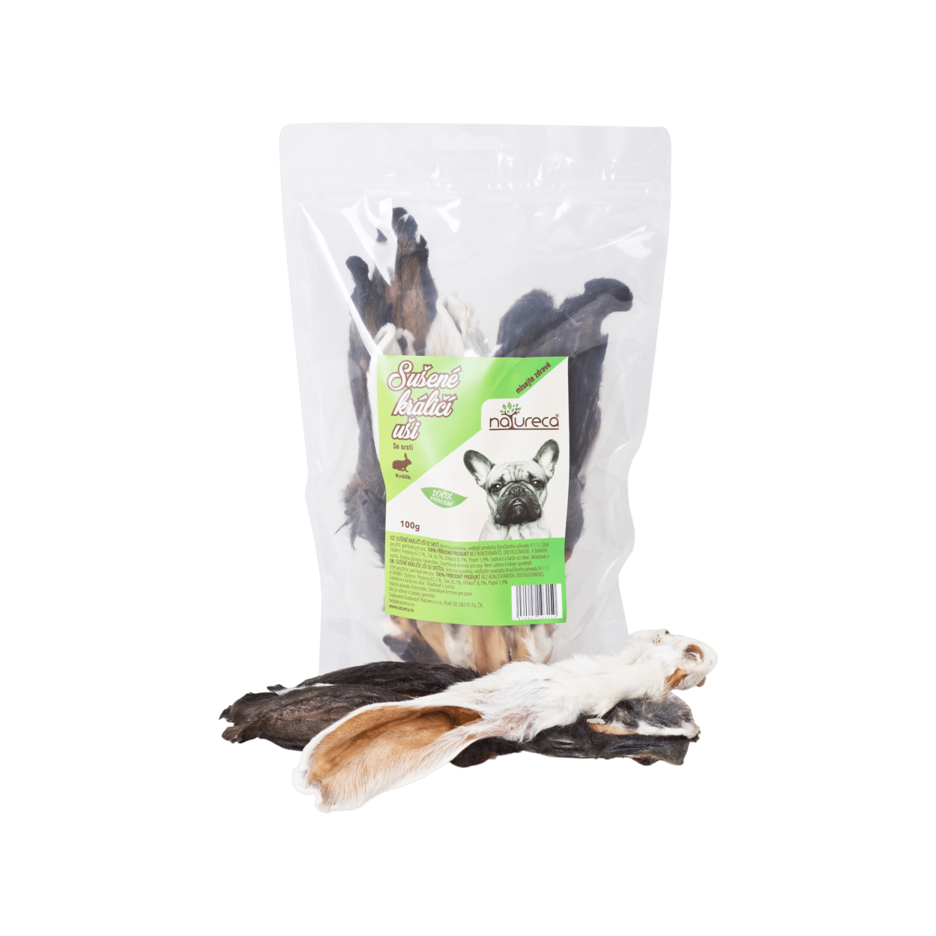 NATURECA pochoutka Králičí uši se srstí 100g