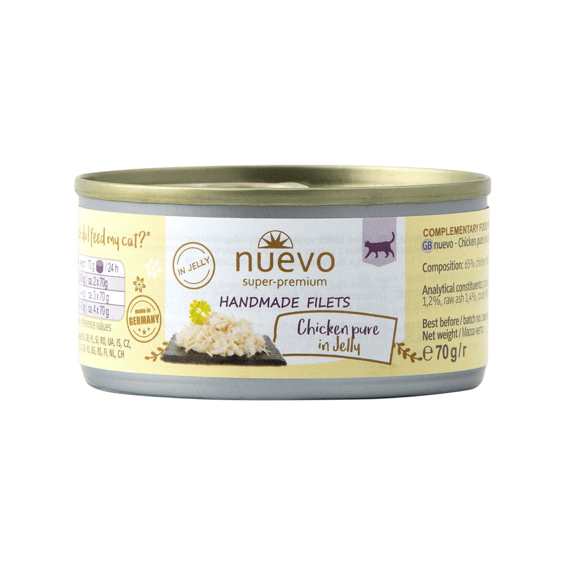 Masové filety nejvyšší jakosti ve vlastní šťávě, ručně vyrobené v Německu. Přírodní kompletní krmivo pro dospělé kočky.