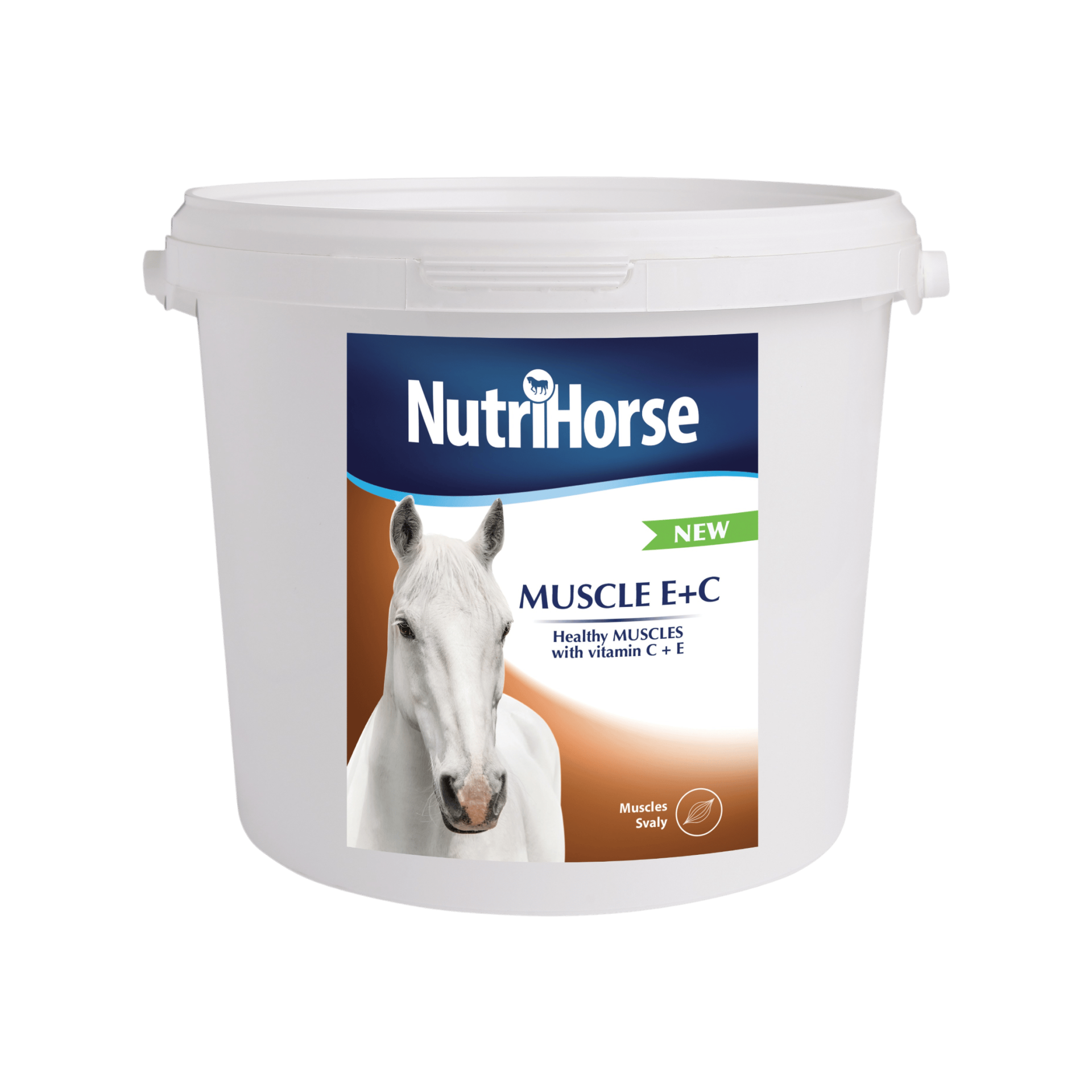 MUSCLE E+C je doplňkové krmivo složené ze směsi antioxidantů (vitamin E a vitamin C), selenu a betainu pro udržení zdravých svalů. Usnadňuje správnou eliminaci volných radikálů (nebezpečné odpadní produkty látkové výměny vyvolávající oxidační stres a mající toxický účinek na tělo) zlepšením svalového tonusu a hbitosti. Muscle E+C pomáhá koním snášet delší námahu a oddaluje svalovou únavu. Selen, společně s vitamínem E, jsou důležitými látkami pro správný vývoj a funkci svalů. Přítomný extrakt z kurkumy (Curcuma longa L.) svými protizánětlivými a antioxidačními účinky podporuje imunitní systém. MUSCLE E+C se doporučuje podávat během intenzivního tréninku a v soutěžních dnech.