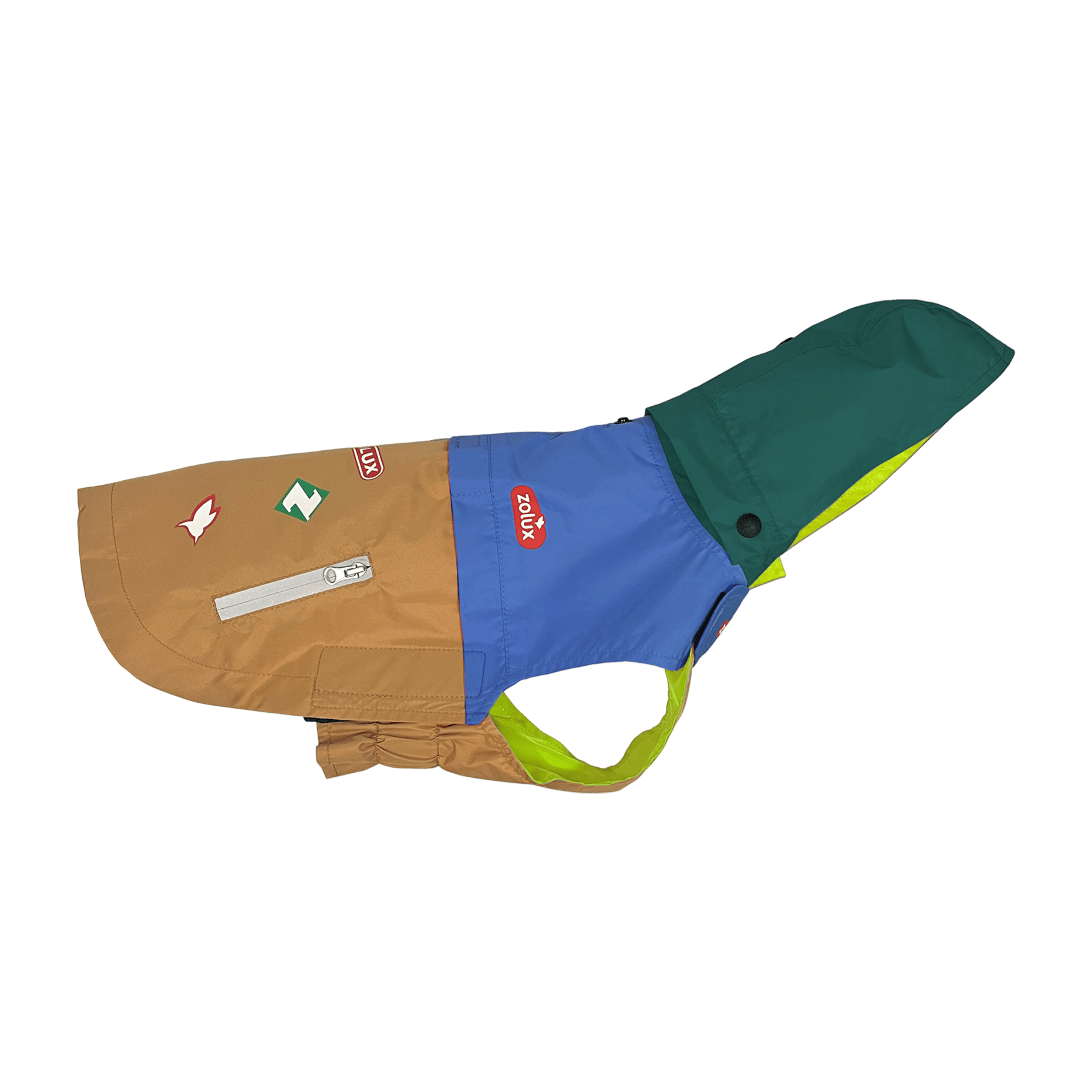 Větruodolná a nepromokavá retro pláštěnka určená k ochraně psů před nepřízní počasí.