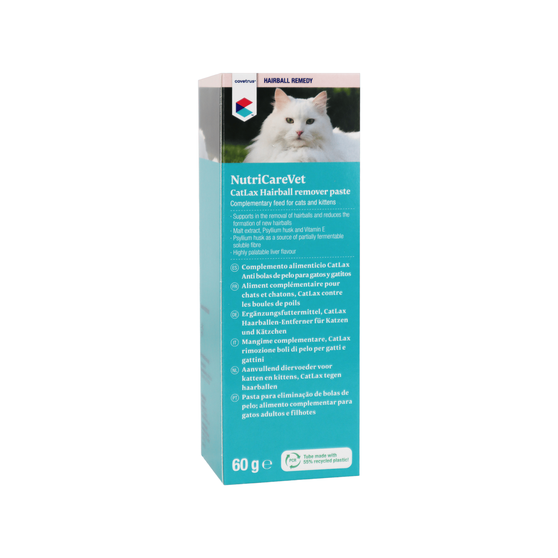 Pasta NutriCareVet Catlax může pomoci průchodu požité srsti a tím odstranit a snížit tvorbu bezoárů. Je také ideální v době výměny srsti a při omezené funkci střev kvůli bezoárům. Vysoce chutná játrová chuť.