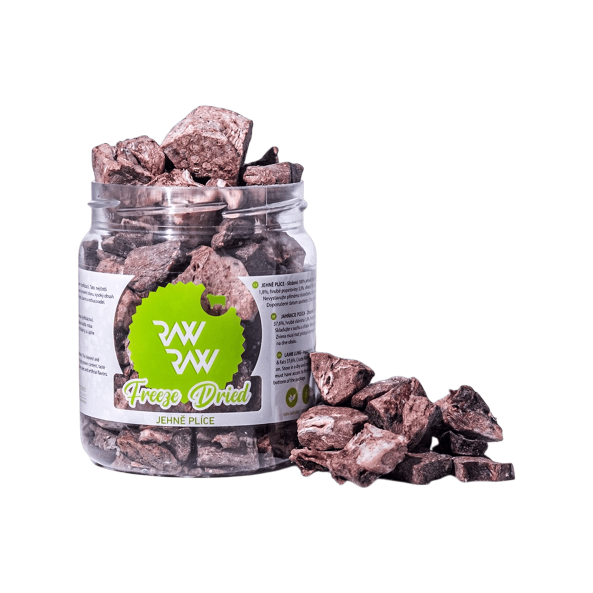Jehněčí plíce jsou bohaté na vápník. Díky křehké konzistenci jsou vhodné pro štěňáta nebo seniory, ale zamilují si je všichni. Jehněčí bílkovina je vhodná pro většinu alergiků.