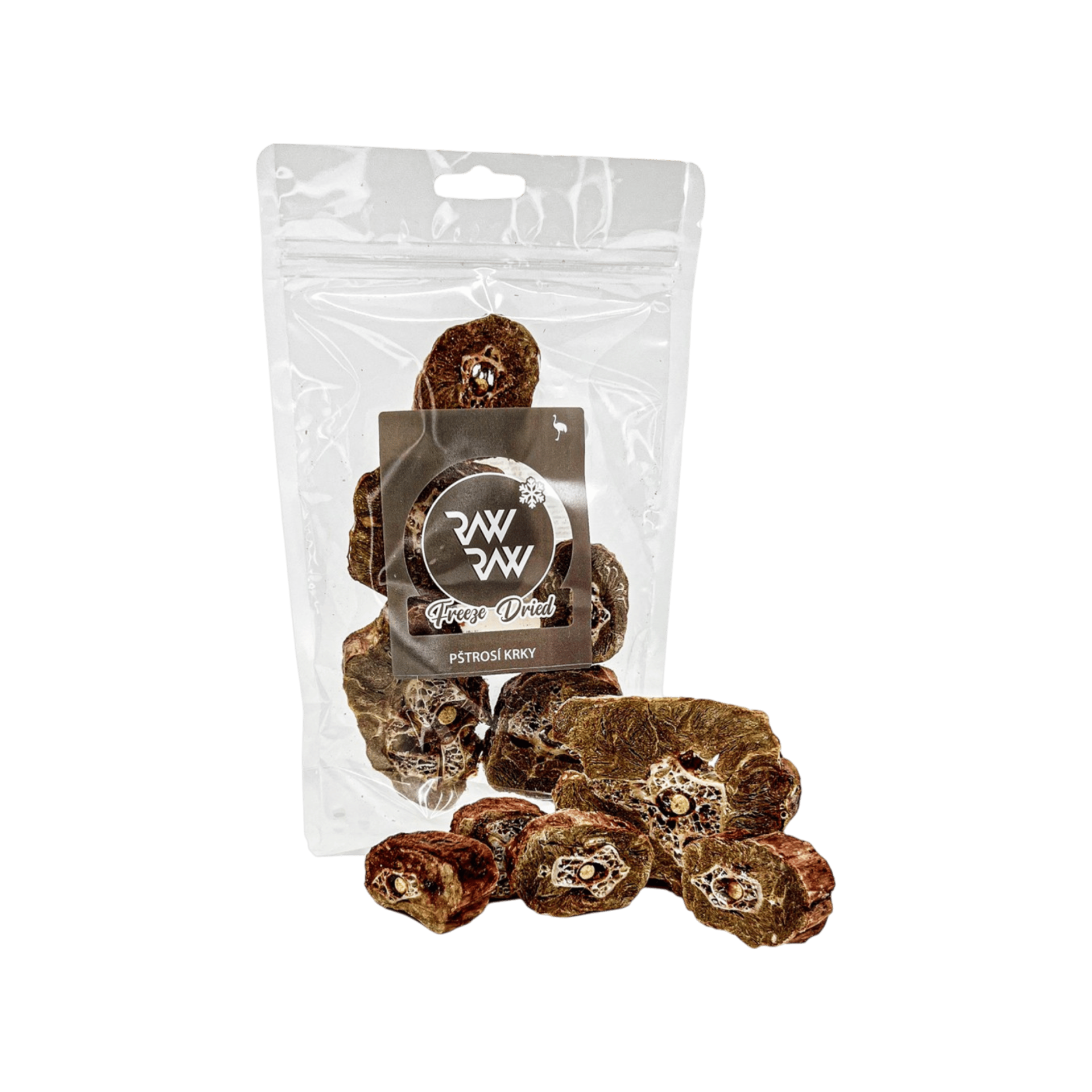 RAW RAW Freeze Dried žvýkací pamlsky Pštrosí krky 60g