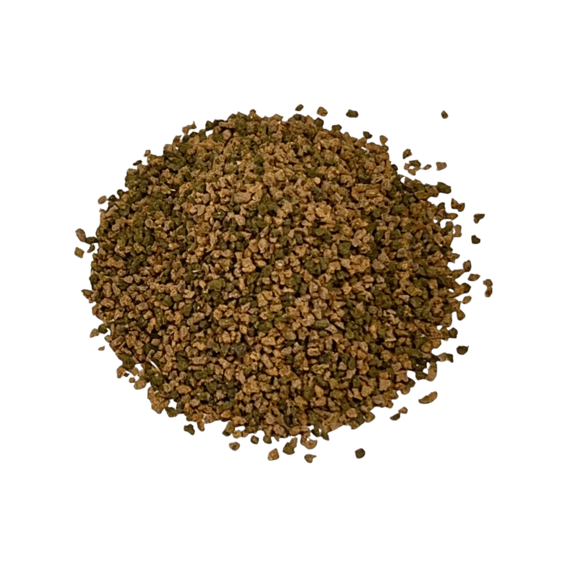 Složení: rybí moučka, pšenice, sójový extrahovaný šrot, kukuřice, piv. kvasnice, rybí tuk, špenát suš., pšeničné klíčky, suš. řasy Spirulina, Chlorella, kukuřičný gluten, moučka z mořských řas, vaječné výrobky suš., piv. mláto, dikalcium-fosfát, paprikový pigment.