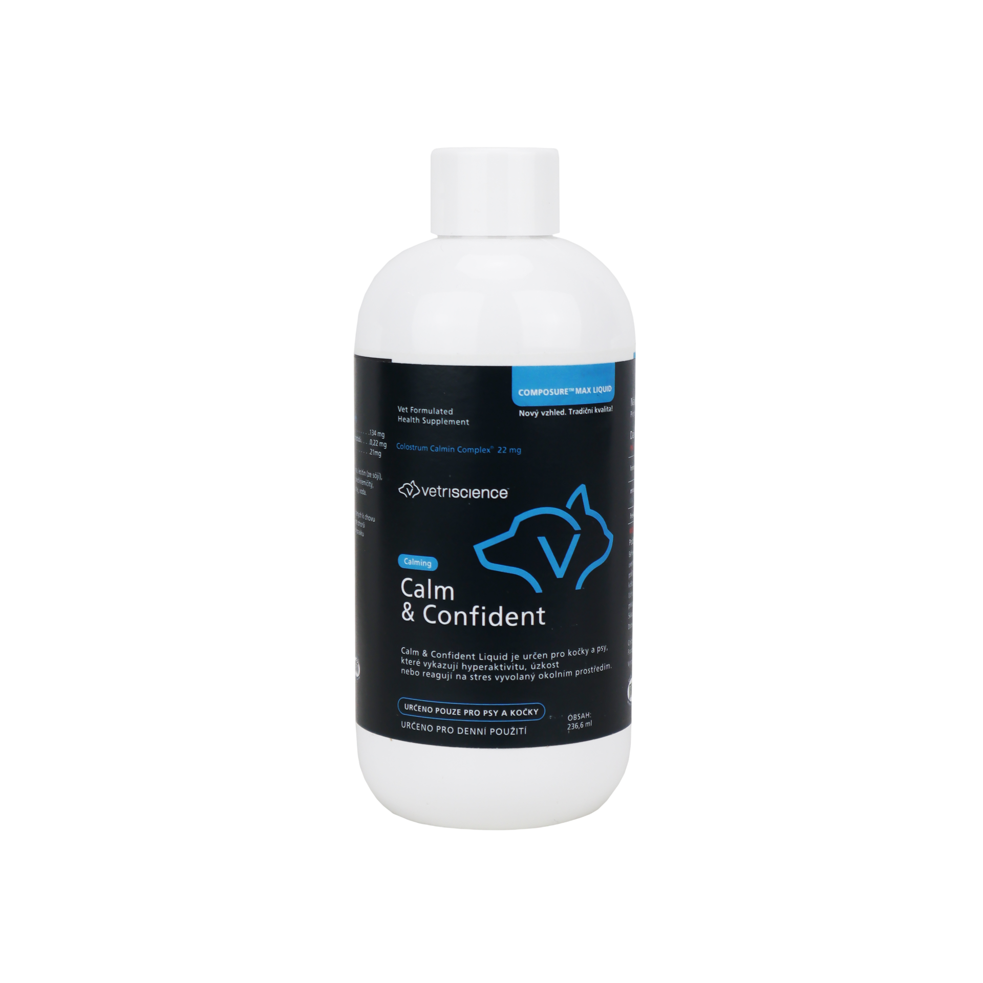 Composure™ Max Liquid je určen pro kočky a psy, které vykazují hyperaktivitu, úzkost nebo reagují na stres vyvolaný životním prostředím.