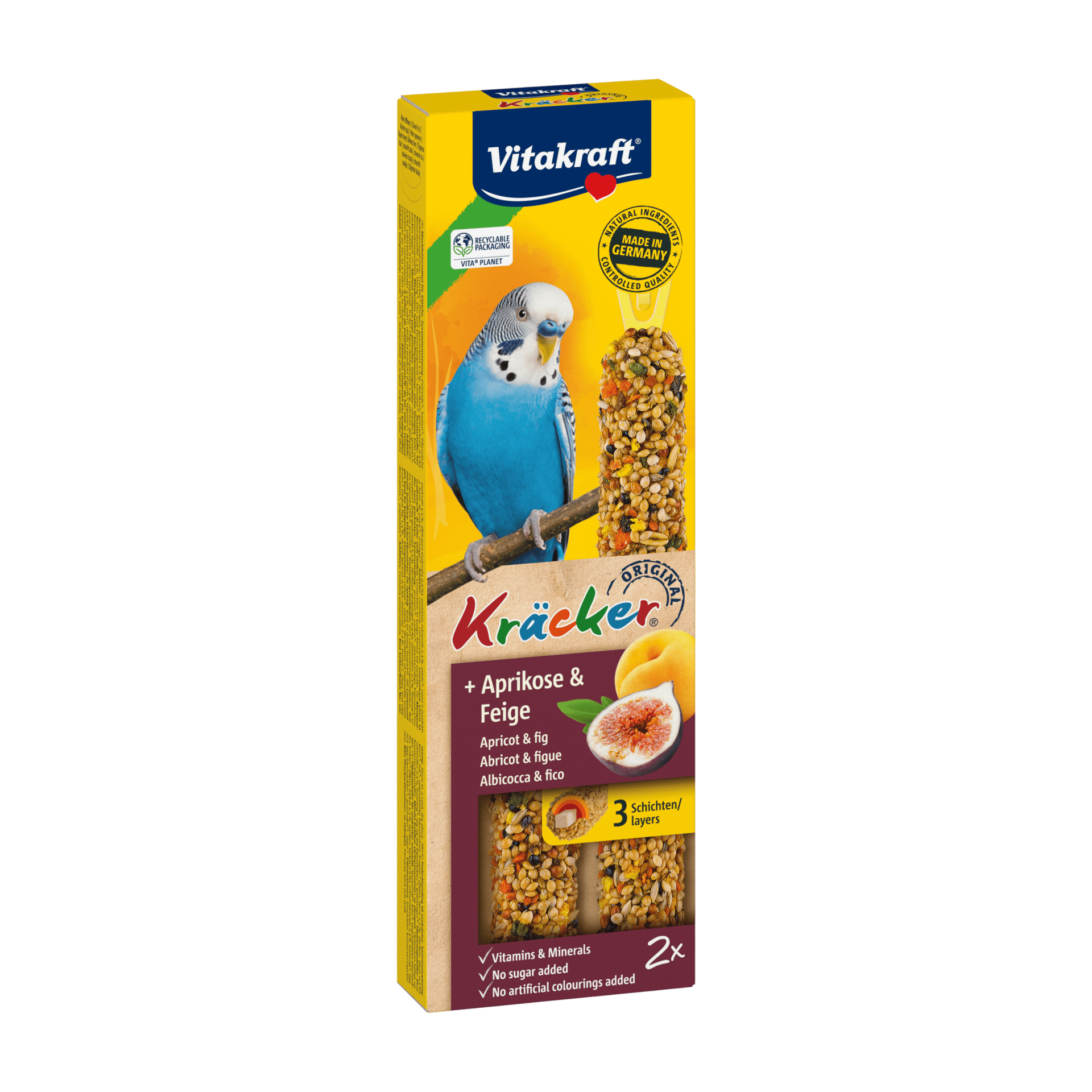 Doplňkové krmivo pro andulky, tyčinky s meruňkou a fíkem.