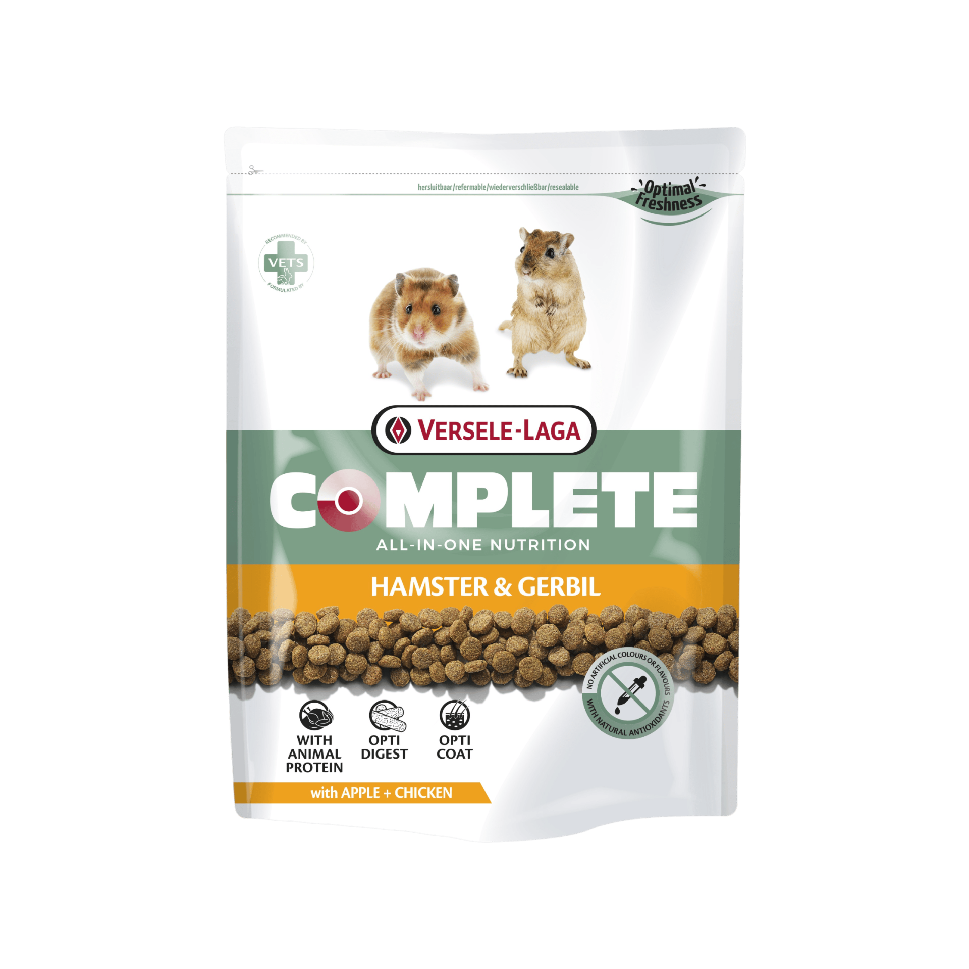 Versele-Laga COMPLETE Hamster & Gerbil je kompletní a chutné krmivo pro křečky, složené ze 100 % ze snadno stravitelných extrudovaných pelet.