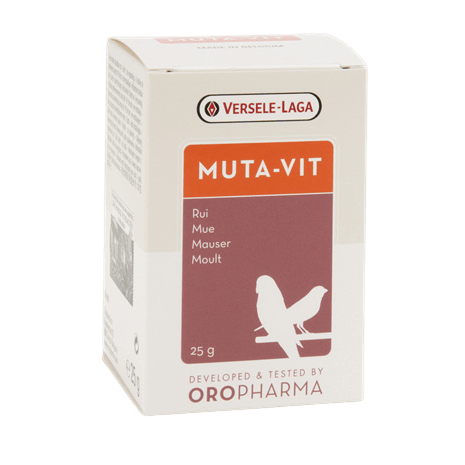 Oropharma Muta-Vit je speciální směs vitamínů, aminokyselin a stopových prvků s vysokým obsahem sirných aminokyselin a biotinu. Tento doplněk stravy podporuje vývoj a kondici peří, posiluje opeření, chrání játra a zajišťuje optimální metabolismus. Muta-Vit pomáhá předcházet úlečnému línání. Během pelichání je pták vystaven stresu. Pak je nutný optimální doplněk krmiva. Aminokyseliny síry v Muta-Vit jsou nezbytné pro tvorbu keratinu, stavebního materiálu pro peří a kůži. Biotin zajišťuje kvalitní keratin. To zaručuje rychlé a dobré línání.