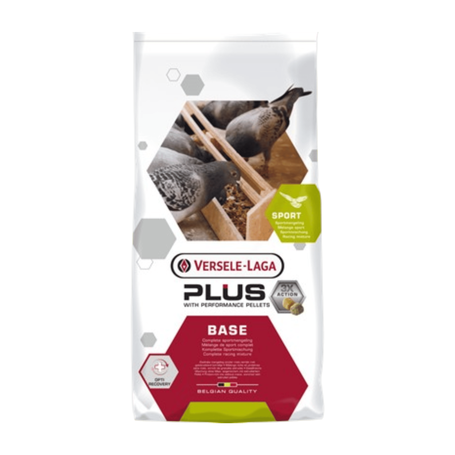 Peleta Plus obsahuje extra aminokyseliny a vysoce kvalitní proteiny, které opravují poškozené svaly po závodě a připravují je na další let. Díky vytlačovacímu procesu pelety Plus se tyto bílkoviny lépe tráví a jsou tělem rychle vstřebány. Holubi se s touto směsí mnohem rychleji zotaví ve srovnání s tradičními obilnými směsmi bez této pelety. Kombinace antioxidantů, vitaminu E a selenu, také přispívá k rychlé regeneraci po letu.